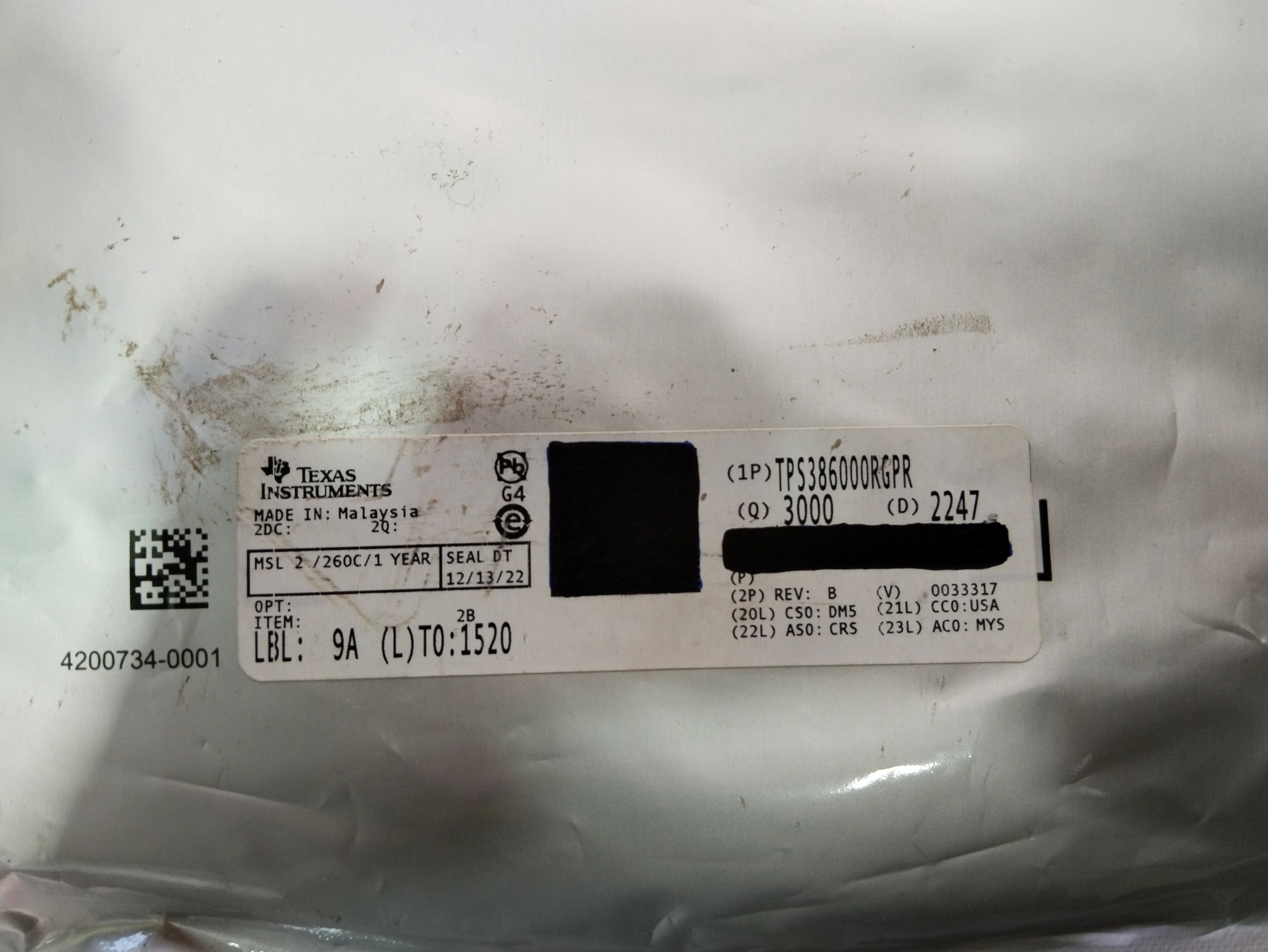 | Part No | TPS386000RGPR |
